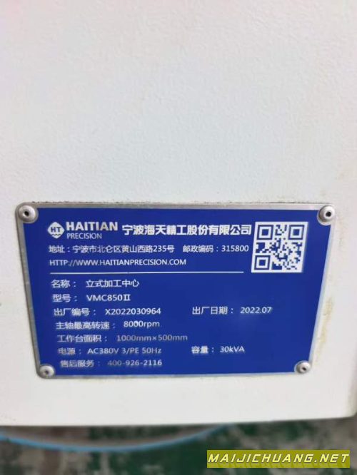 产品名称:22年准新海天850加工中心,安装少用,需要的联系